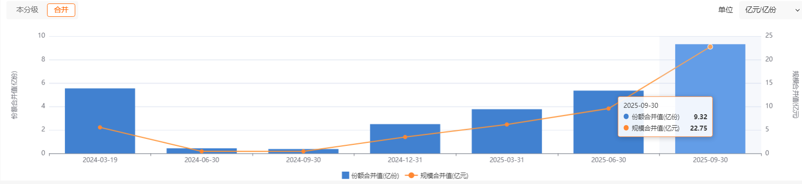 2025年二季度末还只有9.58亿元的规模(合并AC类),到三季度末已飙升至22.75亿元,资金用脚投票,印证了其投资实力。
