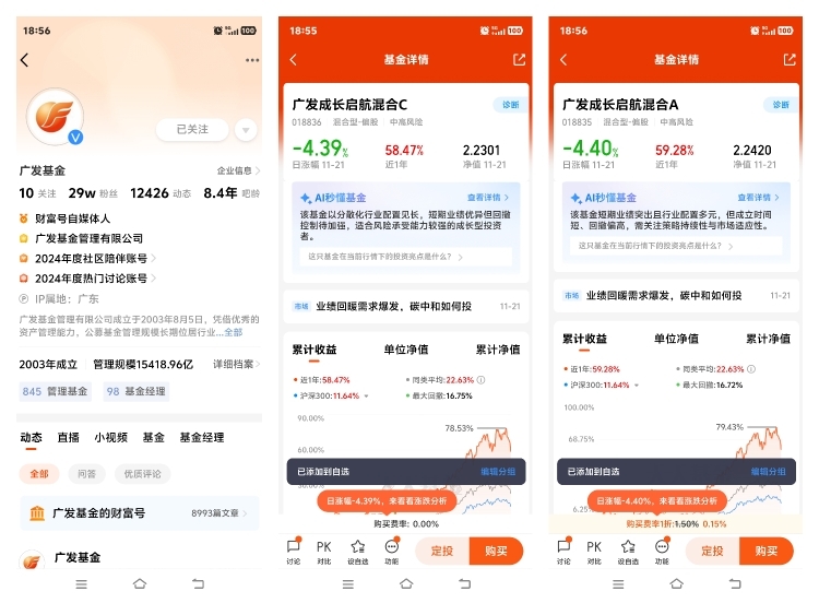 #新兴成长一起投# 2025年以来,算力半导体、通信设备、人工智能等科技板块掀起一轮凌厉涨势,成为A股市场最耀眼的主线。作为聚焦成长赛道的代表性产品,$广发成长启航混合C$ (018836)凭借精准的板块布局,近12个月斩获58.47%的惊人收益,近6个月涨幅也达到37.11%,大幅跑赢17.39%的业绩比较基准,充分展现了科技成长股的爆发力 。然而进入11月,科技板块迎来明显回调,该基金近1个月净值下跌4.23%,11月21日单日跌幅更是达到4.39%,让不少投资者陷入纠结:这轮回调是趋势反转的信号,还是长期布局的良机?成长板块究竟还能投吗?