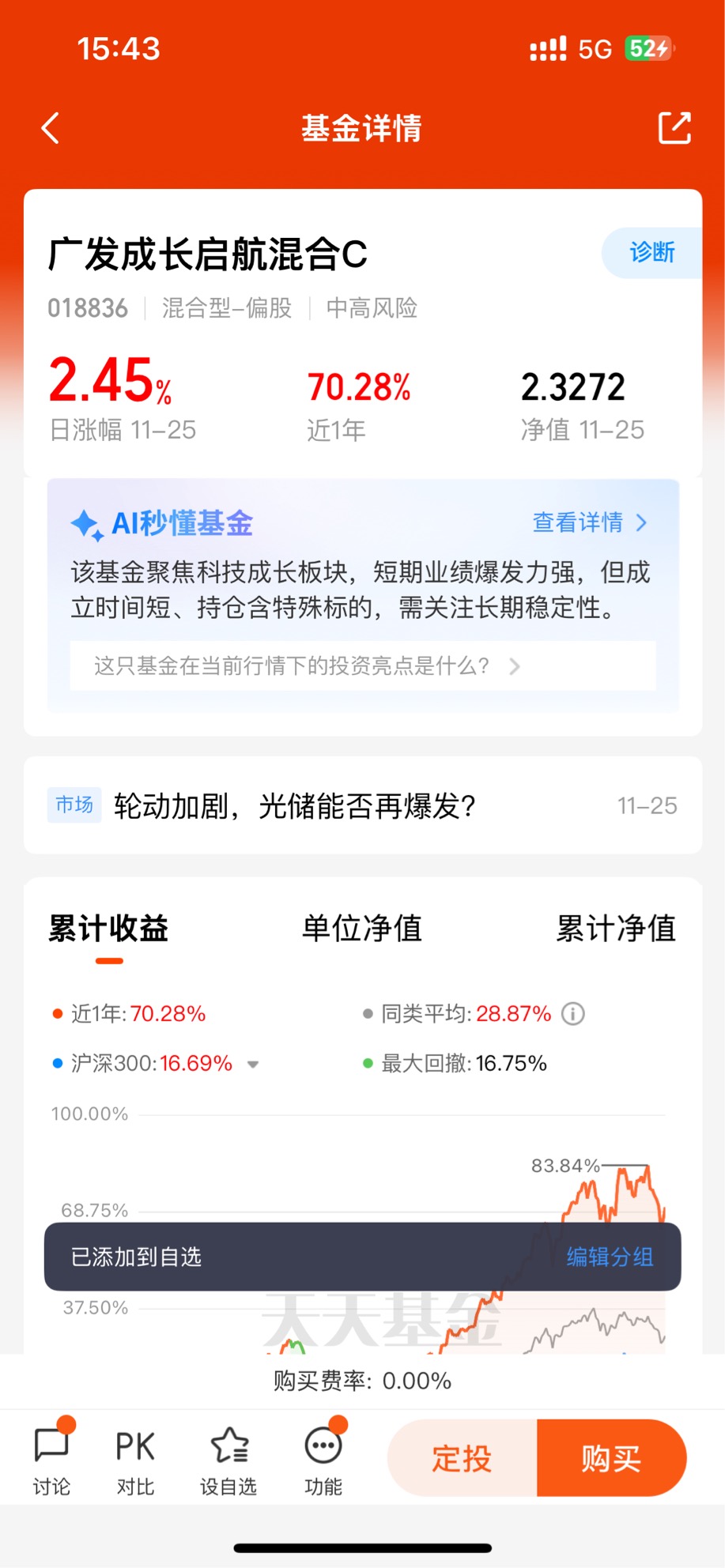 对于投资者而言,广发成长启航混合C的C类份额设计更具吸引力,无需缴纳申购费,持有成本更低,适合中长期持有。需要注意的是,基金股票持仓集中、权益属性较强,近1个月曾出现4.24%的波动,投资者需匹配自身风险承受能力。