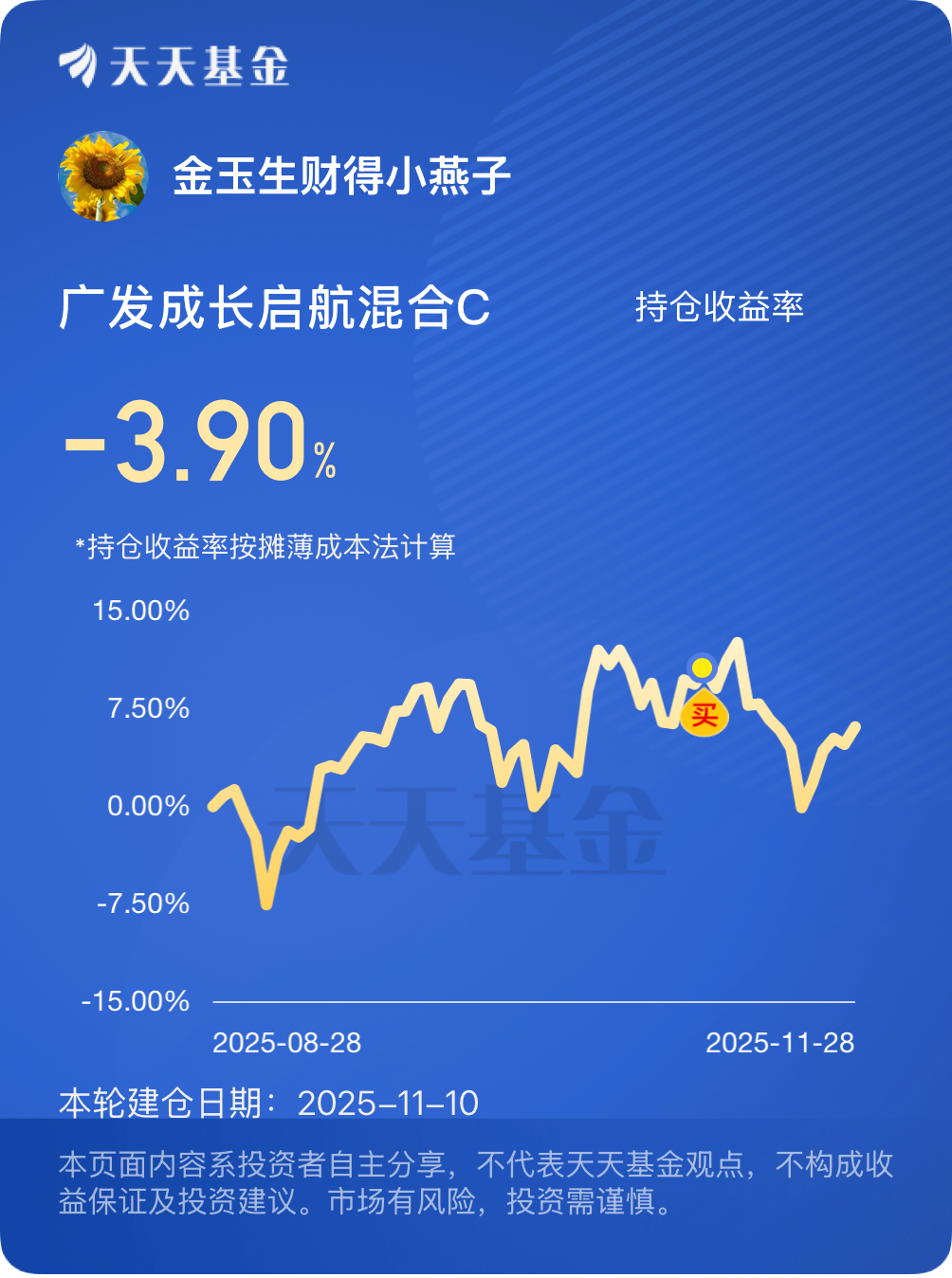 写在最后:这轮科技震荡不是结束,而是第二幕的压腿动作。如果大家把所有线索串起来,其实答案非常清楚——现在这波震荡,不是见顶,不是泡沫破裂,更不是退潮时刻,而是主线行情中非常典型的节奏变化。科技资产的长期逻辑没有变,技术突破没有变,产业链加速没有变,资金方向没有变,风险偏好的定价中枢没有变。真正变化的只是市场节奏,从快涨切换成慢涨、从情绪推着走切换成结构支撑着走。短期调整能吓到人,但长期趋势从不会骗人。无论从美股的周期坐标、A股的资金走势,还是整个AI产业链的进化速度来看,都指向同一个结论:科技牛还没走完,现在只是下一段行情的起跑姿势。这个姿势虽然看起来有点别扭,有点痛苦,甚至有点狼狈,但记住,所有伟大的跳跃,都需要一个扎实的深蹲。现在蹲得越深,未来跳得越高。$广发成长启航混合C$ $广发成长启航混合A$ #晒收益#