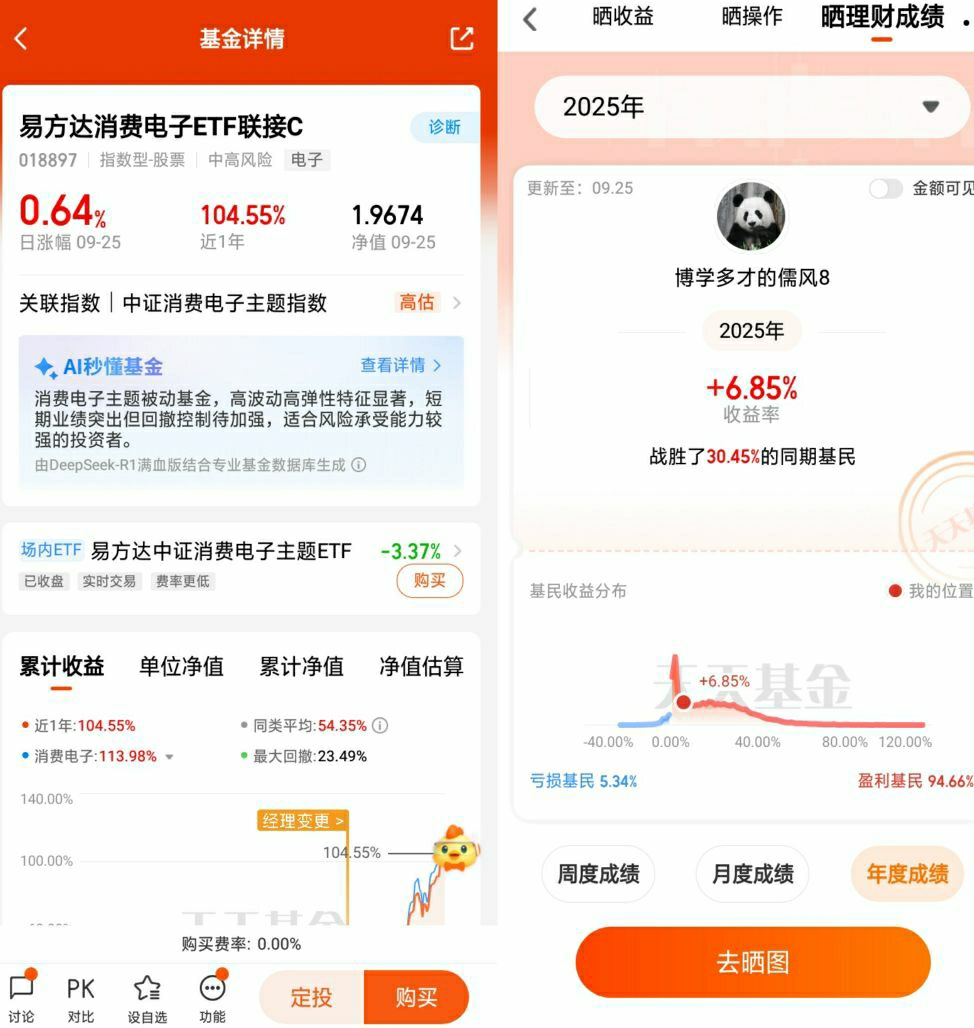 前三季度,我在科技和消费板块布局,科技基金因半导体等赛道波动,收益有起有伏;消费基金凭借稳定的消费需求,取得了较为稳健的收益 。最后一季度,我打算继续坚守消费赛道,同时关注国庆期间旅游、消费数据,若相关企业表现亮眼,考虑加仓对应消费基金;对于科技板块,逢低布局半导体相关基金,毕竟科技发展是长期趋势,短期波动或为布局良机,争取2025收官有好成绩!@易方达基金