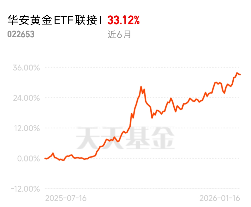 $华安黄金ETF联接I$ 近 6 月涨幅 33.12%,锚定黄金现货,把握避险红利