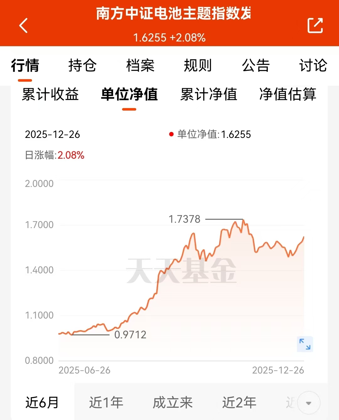 如果想投资电池行业,一个纯粹的工具很重要。$南方中证电池主题指数发起C$(018927)紧密跟踪中证电池主题指数,覆盖从动力电池、储能电池到关键材料的全产业链,风格清晰不漂移。基金近六个月涨66%,同类第一,近一年第一,连续8期第一。当前行业在政策引导下发展更趋健康,为这类指数化投资提供了较好环境。#商业航天赛道爆火:2026年行业或迎质变#