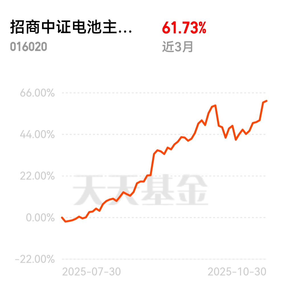 新能源汽车1-7月销量就快千万辆了,同比增长38%,电池作为核心部件需求暴增。招商中证电池主题ETF联接C近3个月涨61.73%,顺势而为收益可观。