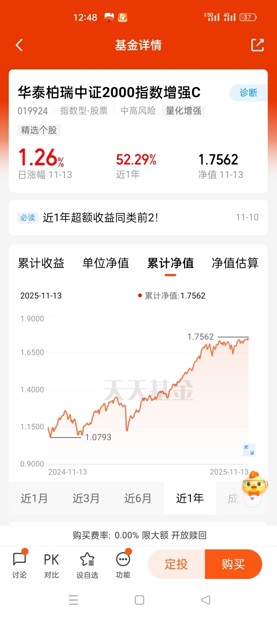 最近A股的小盘股行情挺火爆的,很多投资者都想抓住这个机会。华泰柏瑞就是一只专注于小盘股的基金,它的量化增强效果非常突出,近一年的超额收益在同类产品里排第一。如果你想参与小盘股的行情,又不想自己去选股,这个基金是个很好的选择。$华泰柏瑞中证2000指数增强C$ #多重利好催化!新能源走强#