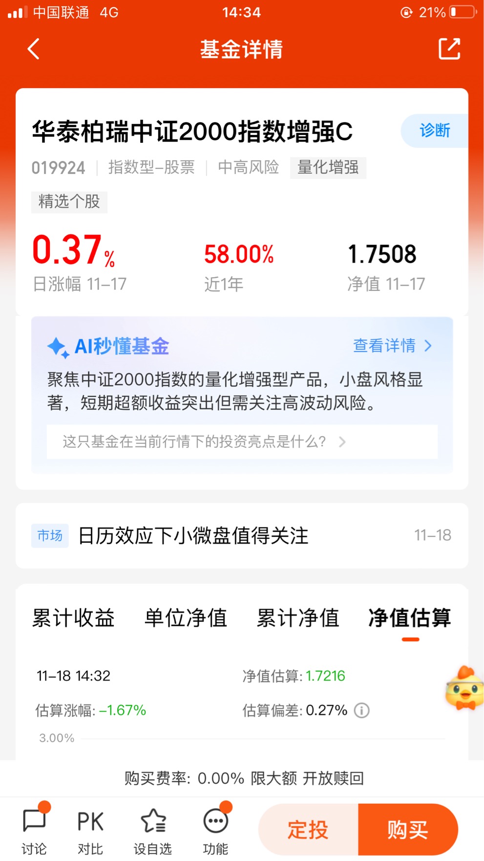 今天A股又是普跌,但小盘股比大盘抗跌多了,像那些AI应用、电商的小票还在涨,明显能看出现在市场就认小盘的行情。不过自己买小票太麻烦,又怕买到垃圾股,不如看看华泰柏瑞——它就是盯着小盘指数做的,而且量化增强做得特别好,去年超额收益在同类里排第一,相当于既能跟上小盘的热度,又有专业的人帮着调仓控风险。不过得说清楚,这基金风险不算小,小盘涨得快跌得也猛,得拿得住才行,投资这事儿可没稳赚不赔的,得理性点。$华泰柏瑞中证2000指数增强C$ #锂电池行业拐点确立!锂电大周期来了?#