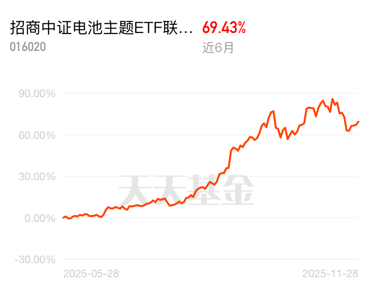 固态电池量产临近,储能装机量增长四五十 %,电池板块成为市场主线,赚钱效应拉满。招商中证电池主题 ETF 联接 C 近 6 个月狂赚 69.43%,头部公司估值 20 倍左右,增长确定不踩雷。$招商中证电池主题ETF联接C$