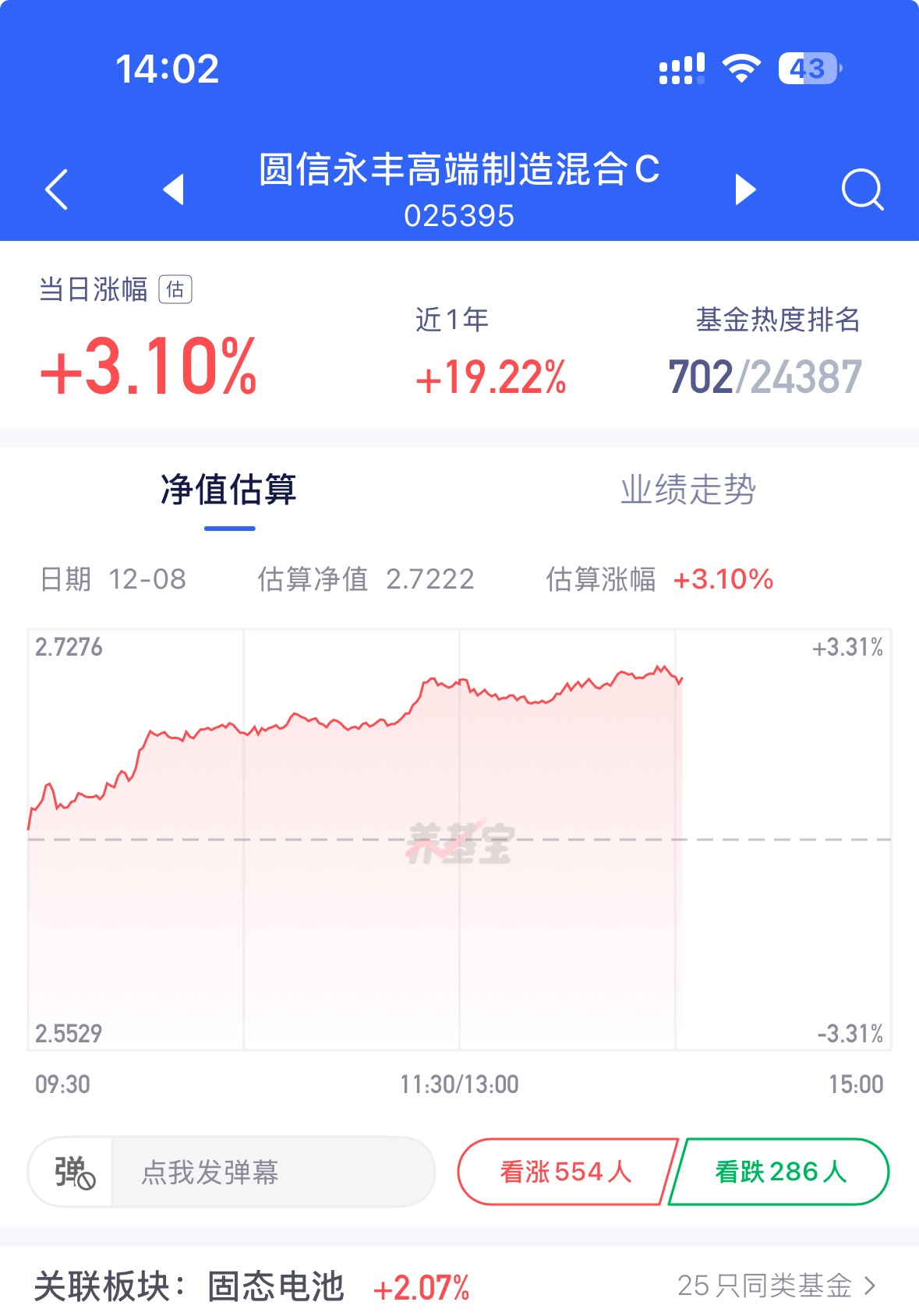 $圆信永丰高端制造A$稳坐固态电池一哥,今天预计涨3个多点,聚焦设备端,确实靠谱