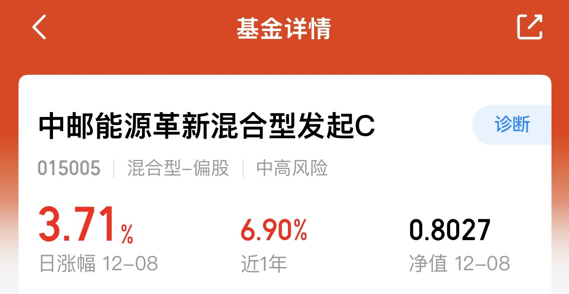 今天电池牛起来了,我正好持仓了$中邮能源革新混合型发起C$,今天涨幅是3.71%