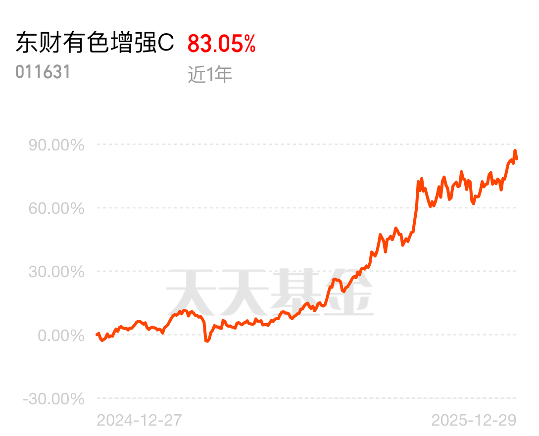 最近黄金、铜价都创了历史新高,有色金属的超级周期已经来了。想跟上这波行情又怕踩坑?东财有色增强 C 近 1 年 83.05% 的收益超给力,帮你轻松布局,不用自己瞎琢磨选股。