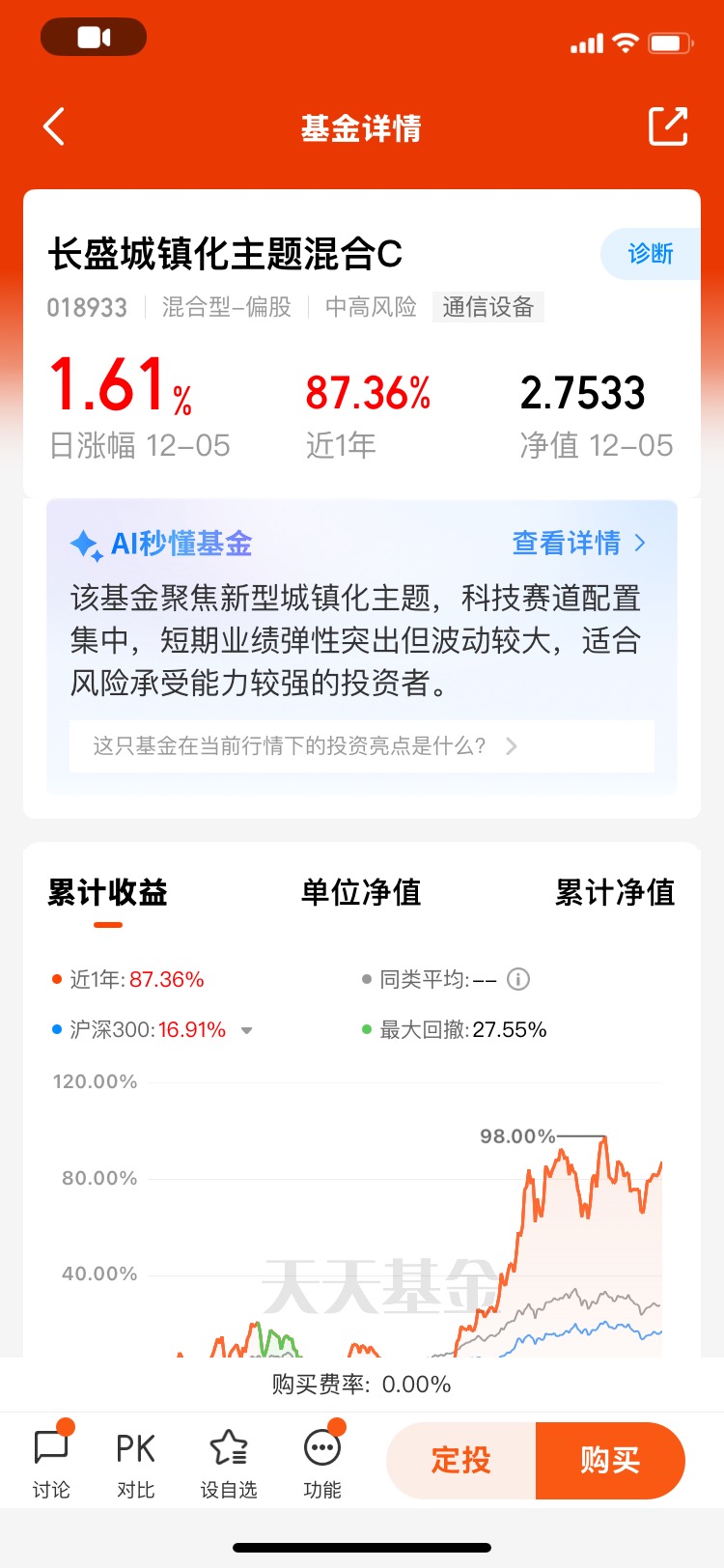 接下来,我想聚焦长盛城镇化主题混合(基金代码:018933)。作为一只聚焦通信、电子等城镇化相关产业的偏股混合型基金,它在当前的市场环境下展现出独特的投资价值。以下是我对这只基金的几点观察。