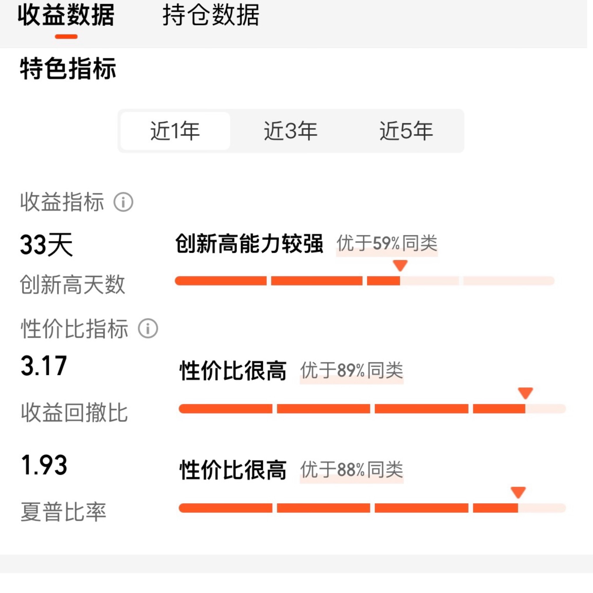 我专门看了它的特色数据:夏普比率1.98(同类前9.81%),收益回撤比3.17(同类前89%)。可能有人听不懂这些指标,翻译成人话就是—“每承担一份风险,能拿到的收益比大部分基金都高”。举个例子,同样是涨10%,有的基金要承担20%的回撤风险,这只基金只需要承担不到10%的风险。尤其是现在市场震荡,这种“高性价比”的基金比“高收益但高波动”的基金更值得拿,毕竟咱们的钱是血汗钱,不是来市场赌大小的,用更小的风险换更高的收益,才是聪明的投资。