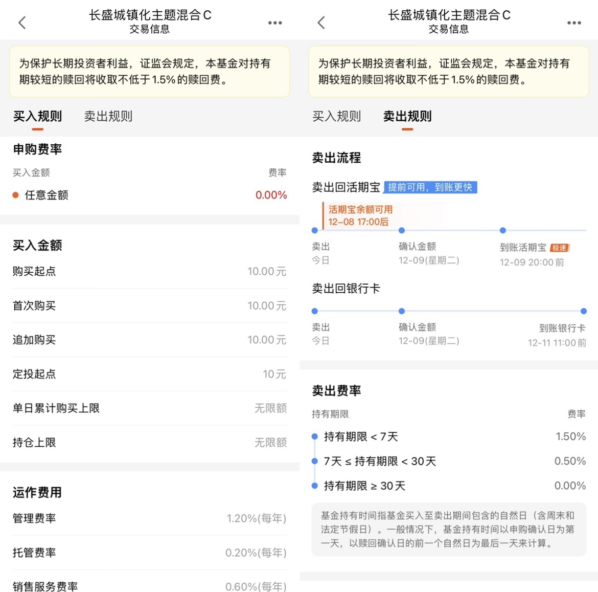 最后说个实在的,这基金的费率太友好了。C类份额申购费是0,管理费1.2%+托管费0.2%+销售服务费0.6%,看起来和别的基金差不多,但关键是“持有30天以上赎回费0”。持有超过30天想卖的时候直接卖,不用扣钱;要是买A类,申购费就得0.15%,赎回费还要扣0.5%。对咱们这种“分批买、长期拿”的投资者来说,C类能省不少手续费,别小看这点钱,一年下来可能就是几个点的收益,积少成多啊。