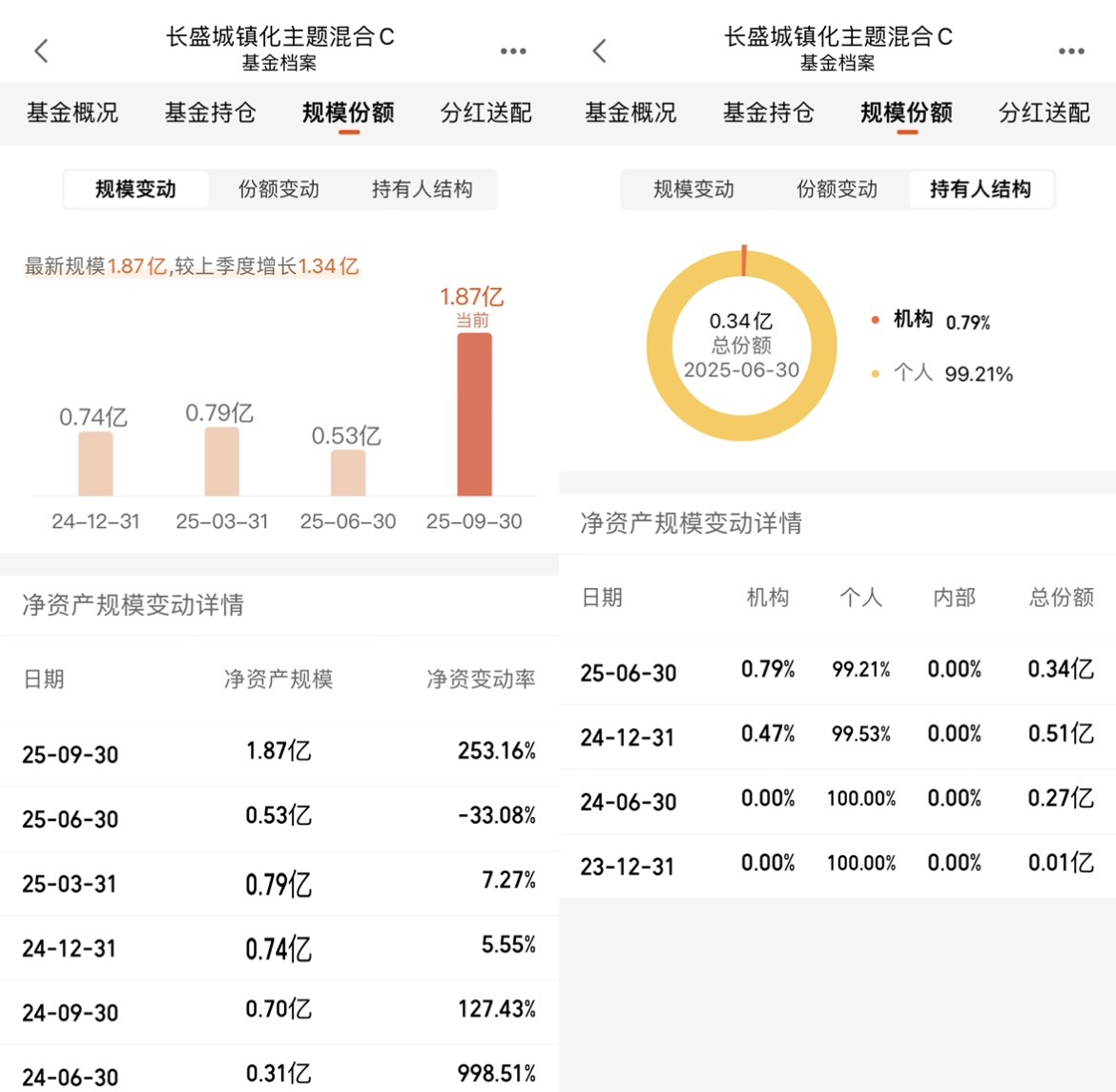 这点太重要了!很多基金看着业绩好,但机构占比高,一旦机构赎回,直接把净值砸穿。这只基金的持有人结构里,个人占了99.21%,机构才0.79%,相当于咱们散户“自己的基金”。你想啊,机构赎回都是几千万、几个亿的砸,散户赎回都是几千、几万,对净值影响微乎其微。我之前买过一只机构占比60%的基金,机构一赎回,三天跌了15%,根本跑不掉。这只基金全是散户持有,大家都是“慢慢买、慢慢卖”,净值不会大起大落,拿起来特别踏实。