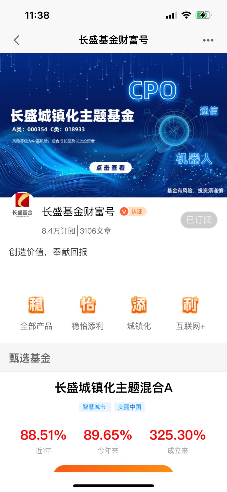 说了这么多,不是让大家盲目买,得看自己的情况:如果你能接受中高风险,想布局科技成长,又不想买太激进的纯科技基金,这只就很合适;但要是你只能接受低风险,那还是买债券基金更稳妥。我还是那句话,其实投资没那么复杂,找到一只“业绩稳、经理懂、风格对”的基金,拿住它,比天天换基金赚得多。长盛城镇化主题混合基金,就是那只你值得期待的宝藏基金,在当下的大环境下,配置这样一款产品,绝对可以满足您的投资需求!喜欢的小伙伴们一定要重点关注一下!!!