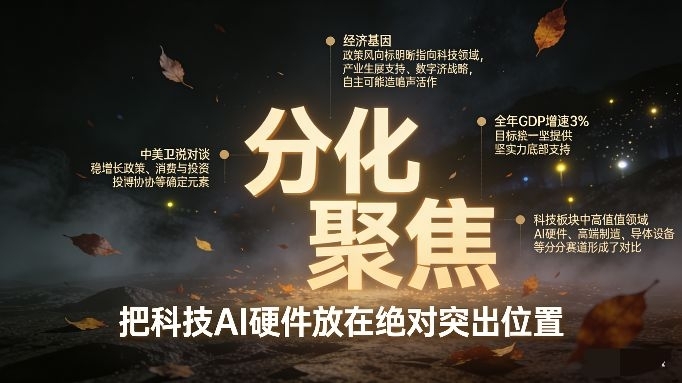 四季度,经济基本面蒙上一层薄雾。中美关税谈判、稳增长政策的加码、消费与投资的博弈……不确定性如秋叶般飘落。然而,政策的风向标已指向科技:新兴产业支持、数字经济战略、自主可控的呼声,都成为暗夜中的微光。全年GDP增速5%的目标,大概率能实现,这为市场提供了底部支撑。