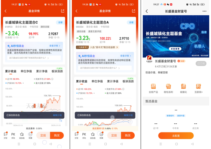 #算力为基,终端致胜#长盛城镇化主题混合C基金(OTCFUND|018933)由代毅管理,作为主动管理型基金,其成立以来长期业绩表现亮眼。截至2025年,该基金年内净值增长率达100.61%,在4448只同类产品中排名第53位,大幅超越同类平均71%的收益率,成为2025年科技投资领域的现象级产品。该基金聚焦CPO、人工智能等新质生产力方向,将科技AI硬件置于核心地位,通过季度动态调整精选主流标的,实现业绩持续领跑。 $长盛城镇化主题混合C(OTCFUND|018933)$