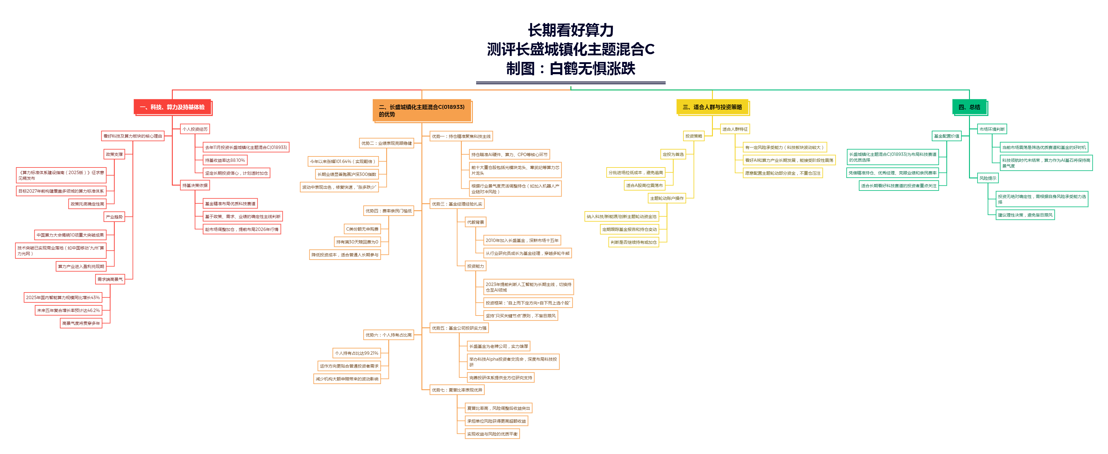接下来白鹤君就跟大家聊聊自己的看法,并深度测评下长盛城镇化主题混合C(018933)这只我持有很久的"科基",文章有点长,这里也是做了个思维导图方便大家整理思路,可以点开放大了看下的。