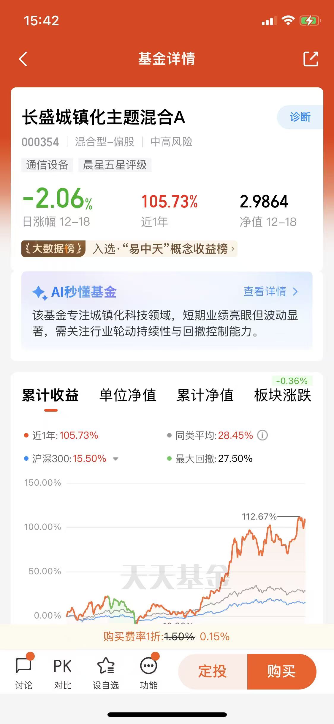 评价一只基金,业绩是最硬的指标。这只基金今年以来的涨幅已经达到101.64%,也就是说年初买入的话,现在已经翻倍了,短期爆发力十足。而且从长期来看,基金业绩显著跑赢同期沪深300指数,说明它不只是靠短期行情炒作,而是有持续创造收益的能力。更值得一提的是,它在波动中的表现也很出色,面对市场调整时能快速修复,这种“涨得多、跌得少、修复快”的特性,对于普通投资者来说特别友好,不用承受太大的心理压力。