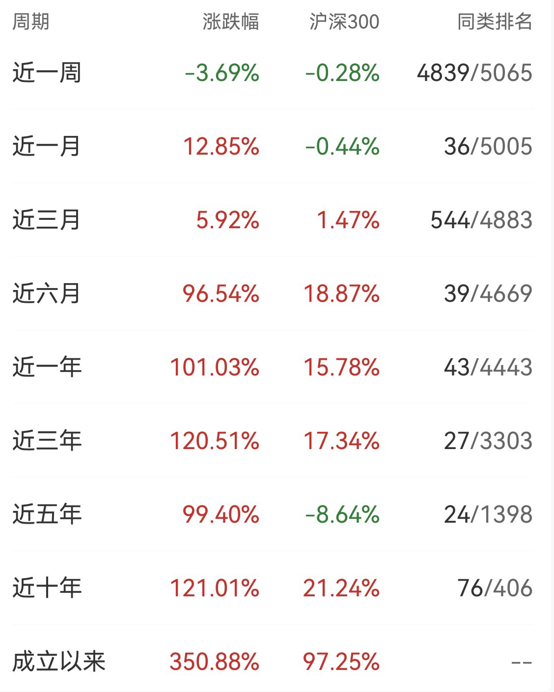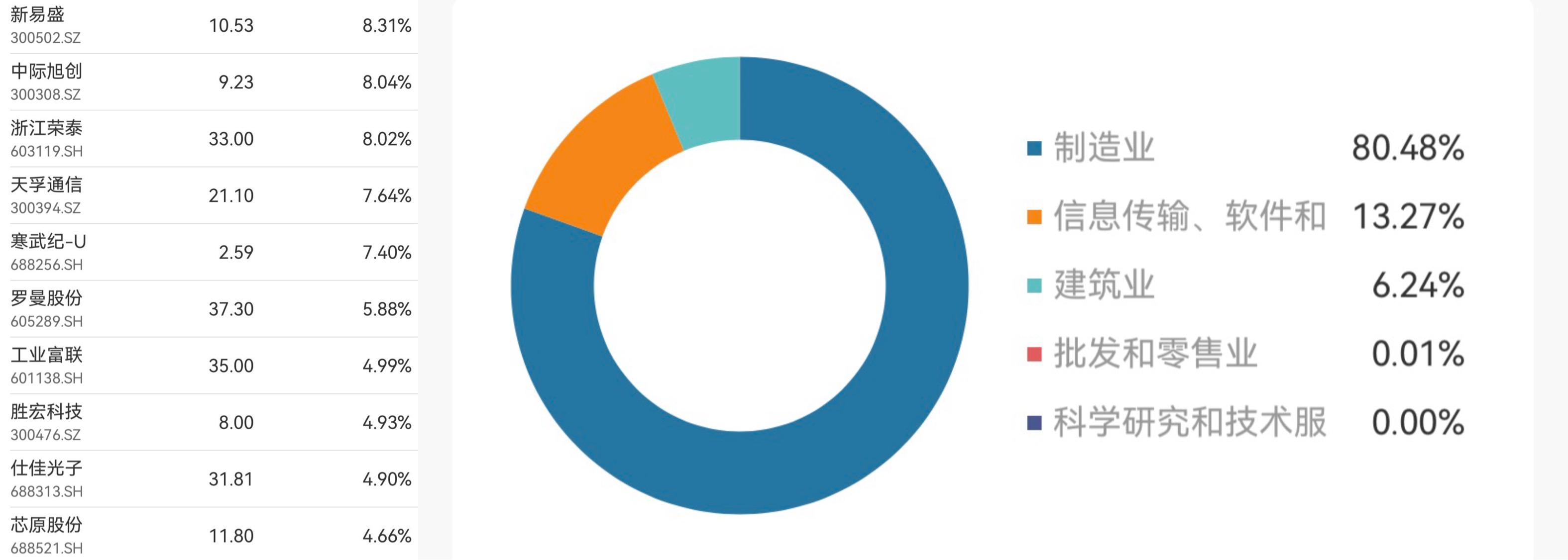 光通信只是“底座”,代毅经理把剩下的核心仓位撒向了中国科技突围的另外几条主线:消费电子龙头工业富联;高端PCB胜宏科技、机器人零部件供应商浙江荣泰生益科技;芯片制造龙头寒武纪,“基础设施+核心应用”二八开的结构,既吃AI算力红利,又对冲单一赛道回撤,对我这种中等风险承受度的人刚好合脚。科技内部轮动快?他把成长波段做成网格:涨多的减一点,低位再加回来,三季度把部分光模块利润挪到刚启动的消费电子,净值曲线反而更平滑。成绩已经验算:截至12月19日,年内收益 100%+,近一年101.03%,同类稳居前1%。至少说明,在这一轮科技浪潮里,代毅经理把“选对方向”变成了“赚到收益”。而这,也是我最为看重的一点。