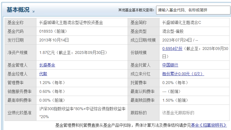 核心三:长盛城镇化主题混合C(018933)产品介绍及深度评测