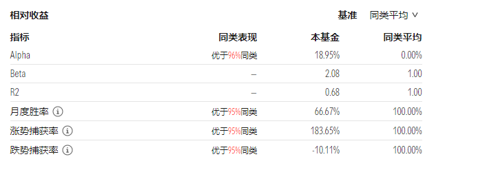 我们来看一下基金的相对收益指标,各项指标均优于同类平均水平。
