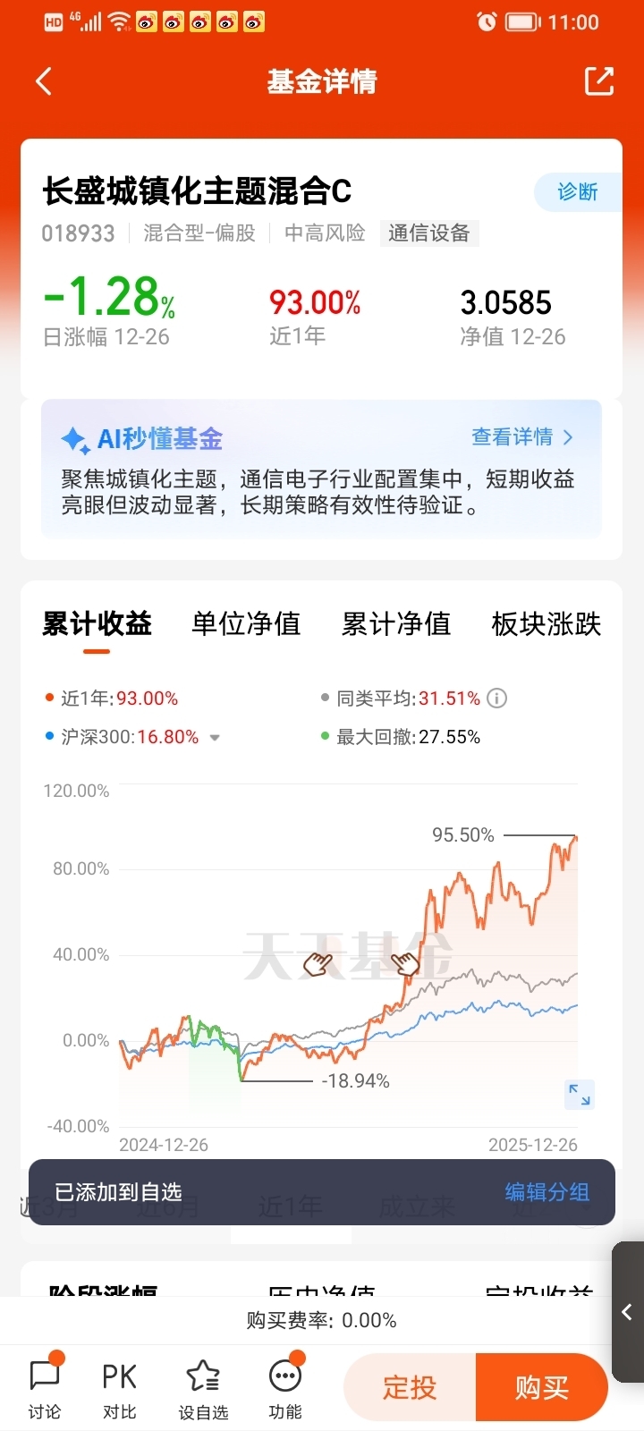长盛城镇化这只基金,它聚焦科技成长,基金经理代毅经验丰富,2025年业绩亮眼(同类前1%),但波动确实不小,适合能承受一定风险、看好科技赛道的投资者。它重仓AI硬件、算力等方向,和当前政策支持高度契合,但要注意市场风格切换和估值调整风险,所以,我觉得定投这支基金更好。