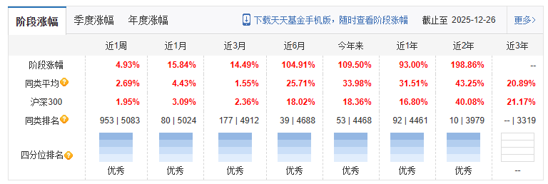 基金经理代毅拥有 5 年科技赛道投资经验,擅长挖掘 “技术拐点 + 市场预期差” 机会。其管理策略注重 “精选个股 + 动态调仓”,在 2024 年 AI 算力行情启动初期即重仓中际旭创(全年涨幅 320%),并在 2025 年二季度精准布局固态电池材料龙头,展现出对产业趋势的前瞻性判断。截至 2025 年三季度,基金前十大重仓股平均 ROE 达 25%,显著高于行业平均水平。