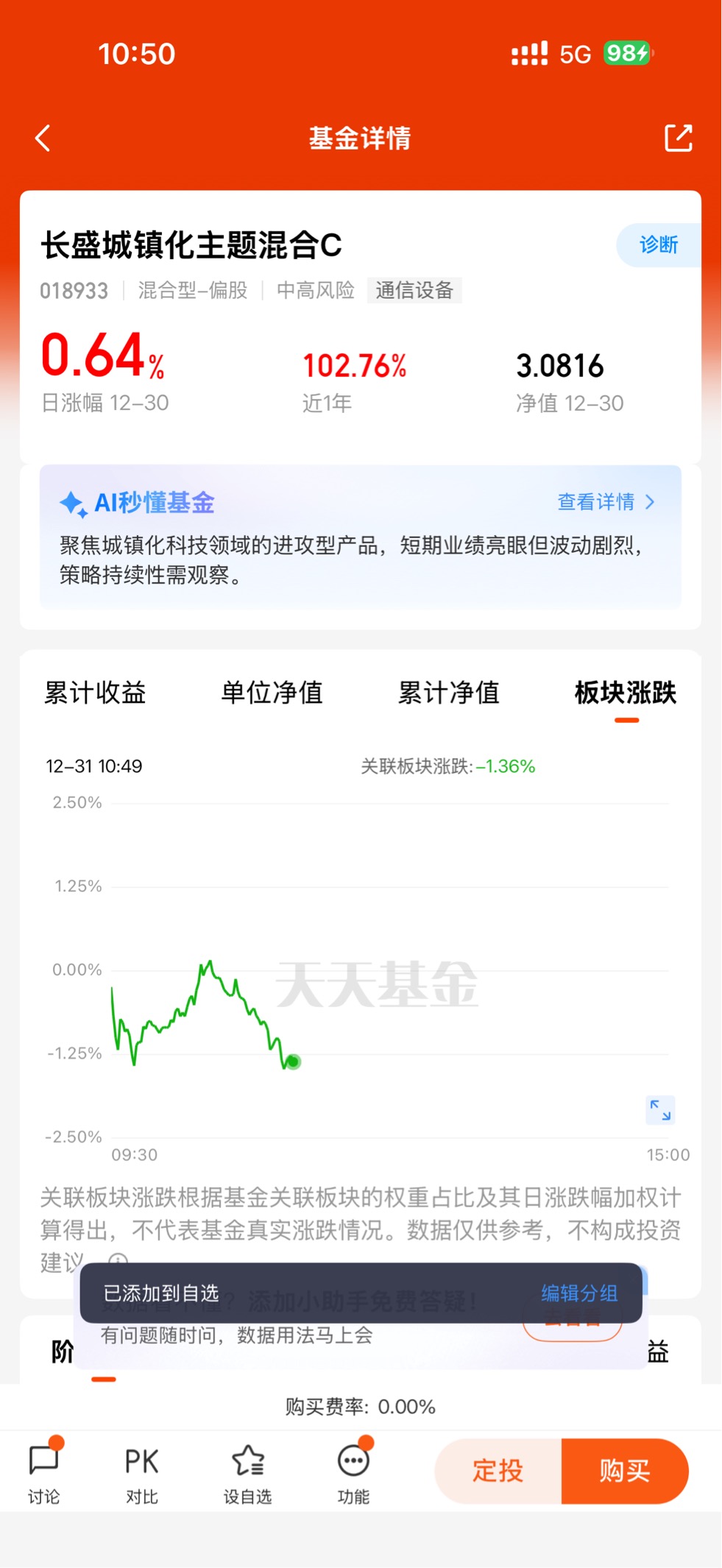 长盛城镇化主题混合C(018933)恰好踩中了“城镇化提质+科技赋能”的双重风口,是我年末配置的核心标的之一。这只基金最亮眼的地方在于,它没有局限于传统基建,而是精准捕捉新质生产力与新型城镇化的交集,将AI算力、半导体、国产算力基建等作为核心布局方向,最新持仓聚焦光模块、存储等优质标的,完美契合“算力为基”的市场主线。从业绩来看,它的表现堪称惊艳,近6个月涨幅达99.43%,近12个月更是实现102.76%的翻倍收益,12月30日单日仍保持0.64%的稳健上涨,夏普比率跻身同类前20%,在震荡市中展现出强赚钱效应与抗风险能力。