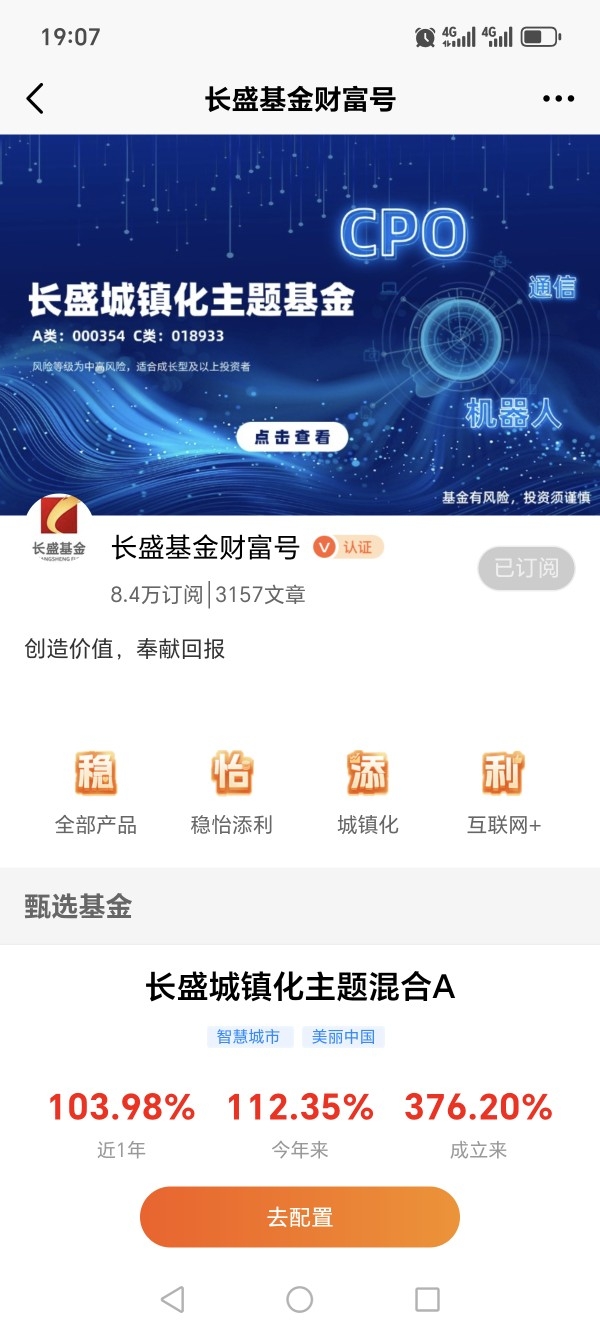 所以我拥抱了长盛城镇化主题混合C(018933),因为长盛基金是很多投资者心目中的投资理财好帮手,我们对它相当信任。@长盛基金