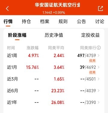 军工航天热度走高,华安国证航天航空行业ETF联接C近月涨15.76%,免申购费弹