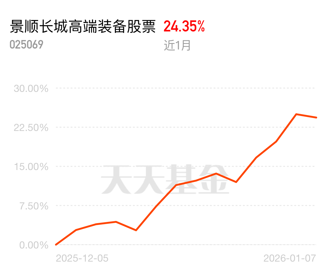 1.3 万颗低轨卫星组网需求,高端装备订单爆增!昨天板块小回调今天继续冲,妥妥的当下主线。景顺长城高端装备股票近 1 月 24.35%,背靠国家战略,涵盖核心领域,长期逻辑硬,业绩亮眼没话说。$景顺长城高端装备股票$