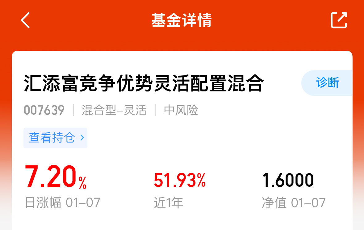 我加1000元 $汇添富竞争优势灵活配置混合(OTCFUND|007639)$