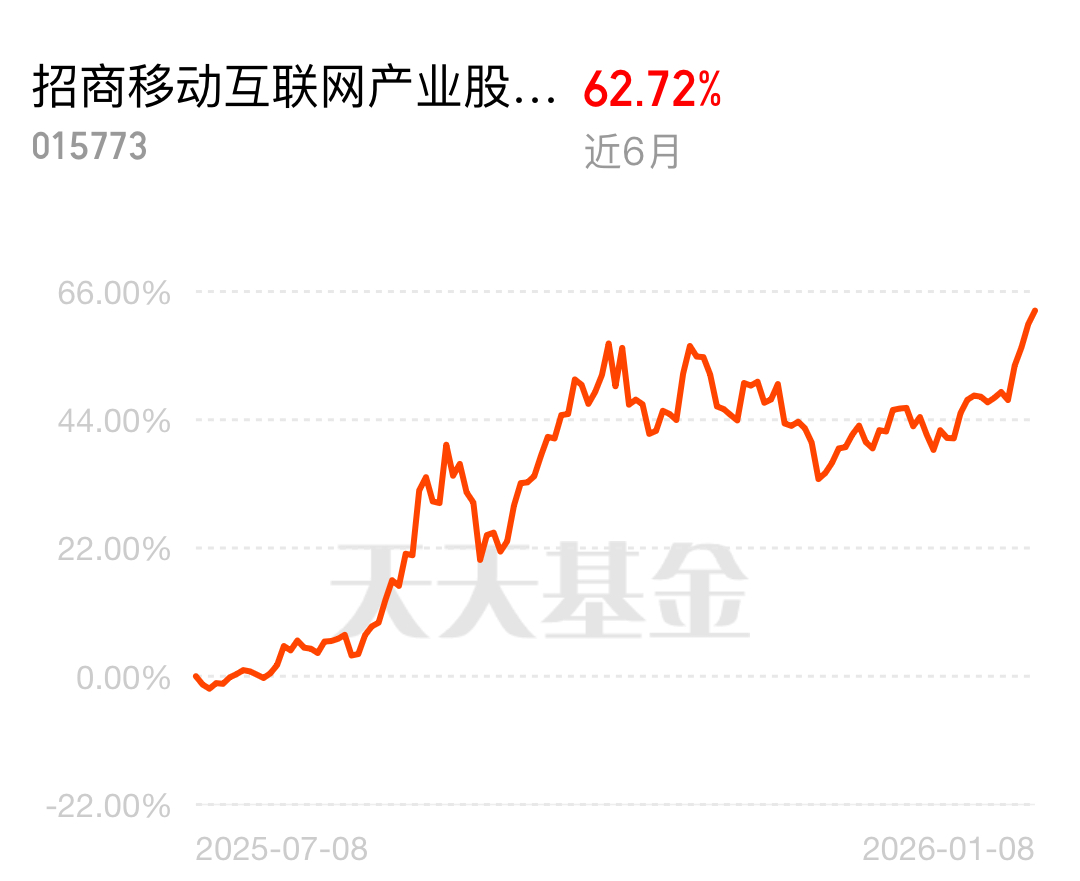 移动互联网板块近期资金持续净流入,板块走势持续走强。招商移动互联网产业股票基金 C 近 6 月收益 62.72%,连涨 4 天势头正盛,昨天又涨 1.46%,轻松分享板块成长红利。