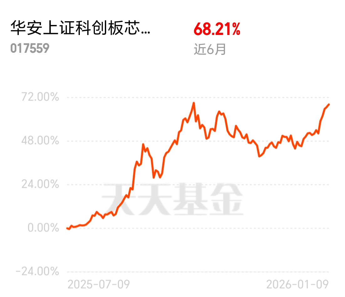 国产替代 buff 叠满,$华安上证科创板芯片ETF发起式联接A$ 近 6 月涨 68.21%,重仓硬核半导体龙头,入手就是赚