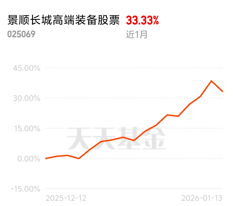 跌时入场没出错,景顺高端装备今翻红还在蓄力,近一个月业绩能打,费率跟业绩挂钩很靠