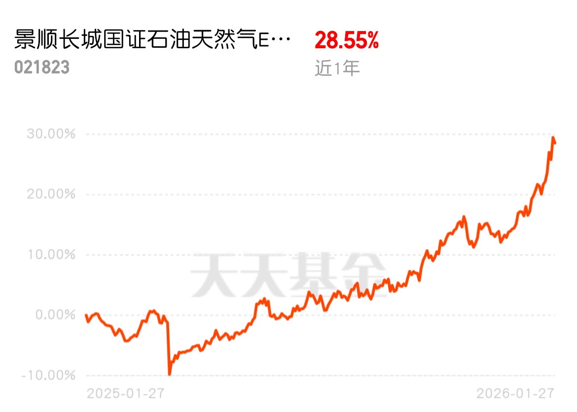 想赚油气上涨的红利,就看景顺长城国证石油天然气 ETF 发起式联接基金 C,近 1 年 28.55%,美国寒潮 + 地缘政治让油气贵金属暴涨,油价淡季不淡,半日涨超 4%$景顺长城国证石油天然气ETF发起式联接基金C$