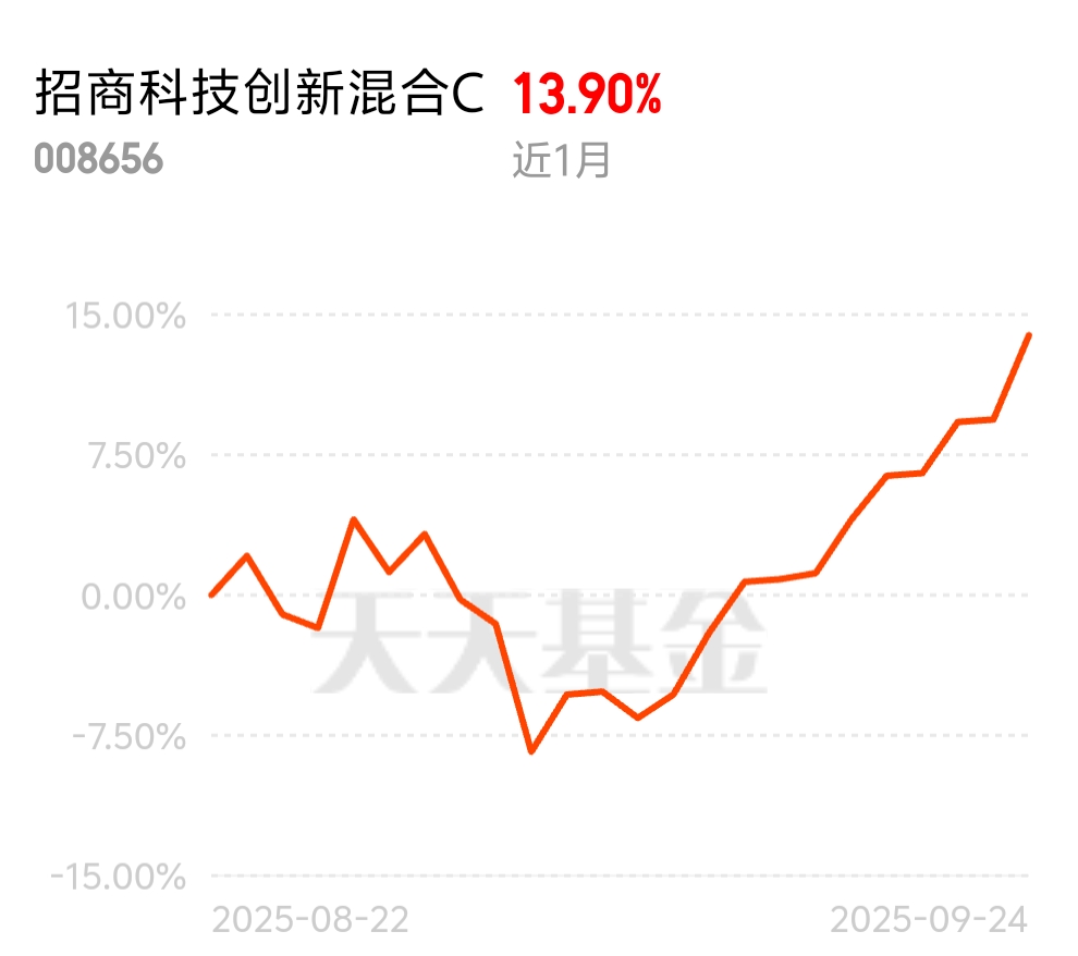 半年来半导体板块强势,招商科技创新混合C深耕AI芯片,科技创新连涨11天,昨天涨4.12%,过去一年111.72%,值得上车。