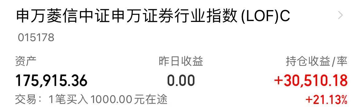 今天我加仓$申万菱信中证申万证券行业指数(LOF)C(OTCFUND|015178)$