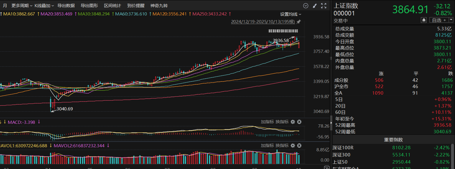 整体来看大盘本身有调整的需求,上周4刷新3900的整数关口后,并没有明显放量