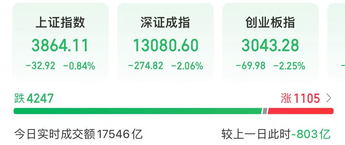 盘面上,截至我发文,上证指数下跌0.74%,深成指数下跌2.13%,创业板指数下跌3.67%