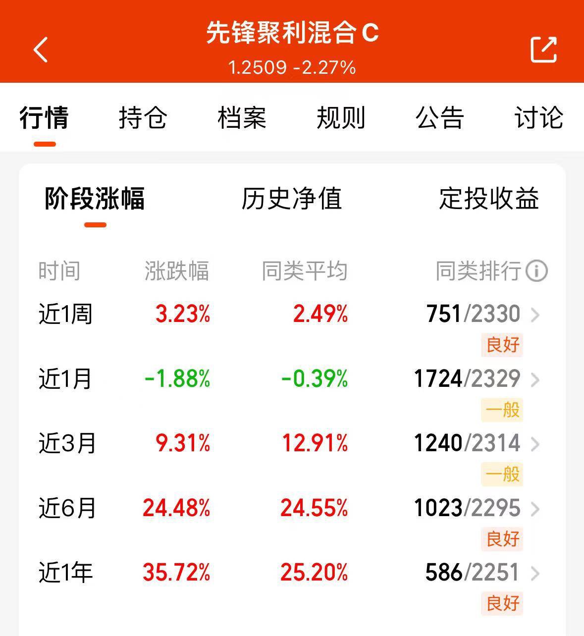 略微回调,今天正好有上车点的点位,先锋聚利混合C近1年35.72%收益更显稳健,