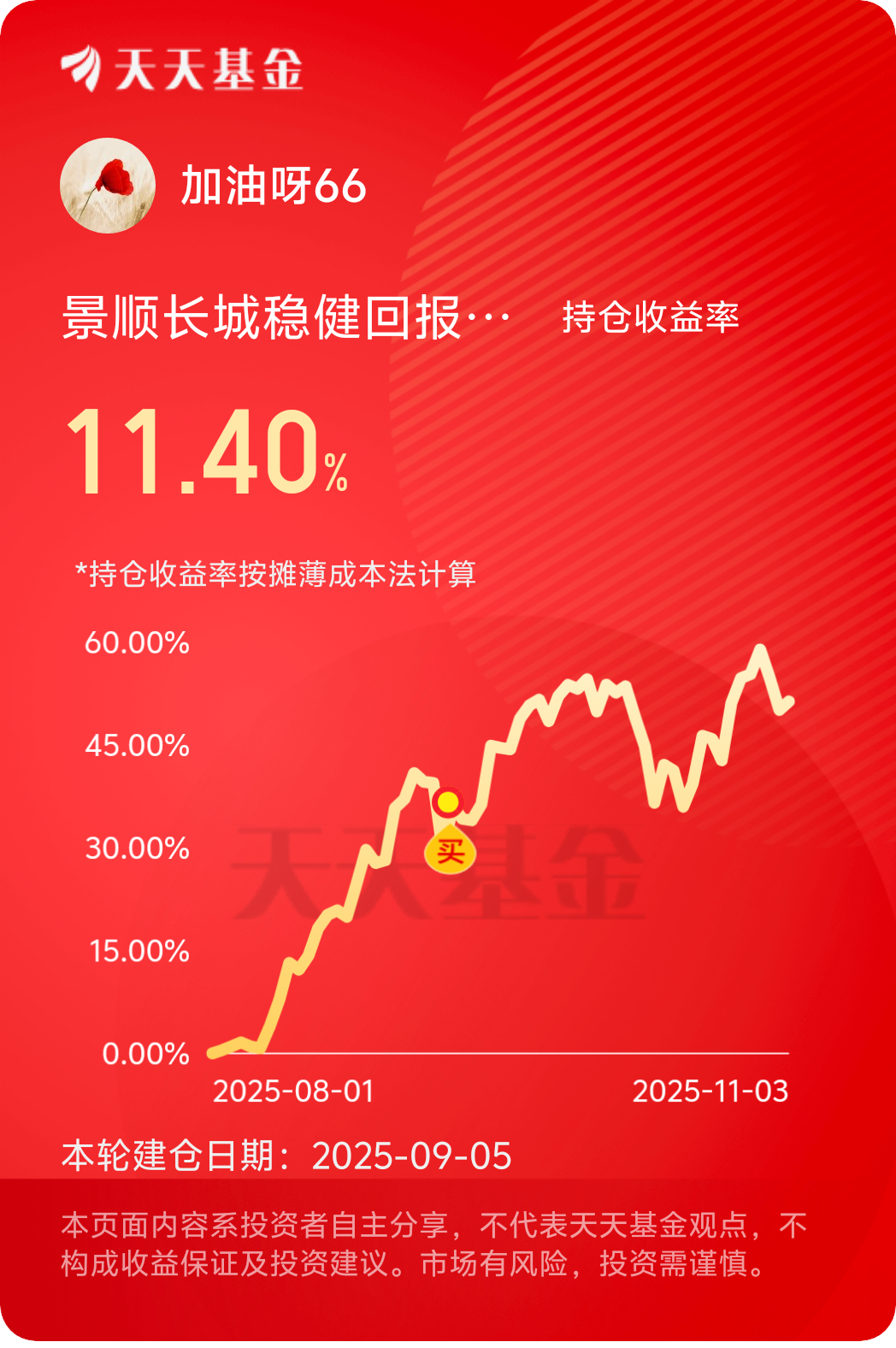 最近科技股的波动大,比较考验风险控制,买的$景顺长城稳健回报混合C$ #晒收益#