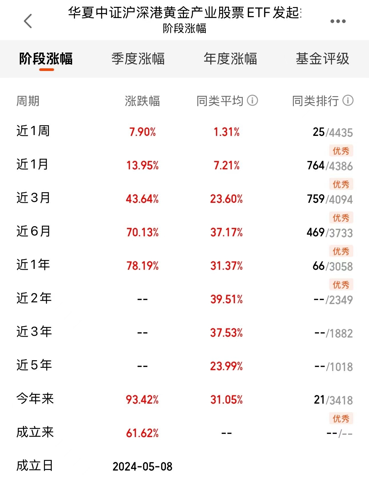随着市场指数持续创新高,黄金的吸引力也随之增强,这基昨天大涨7%+,近1个月上扬13.95%,$华夏中证沪深港黄金产业股票ETF发起式联接C$行业主题明确,今天市场回调逢低加
