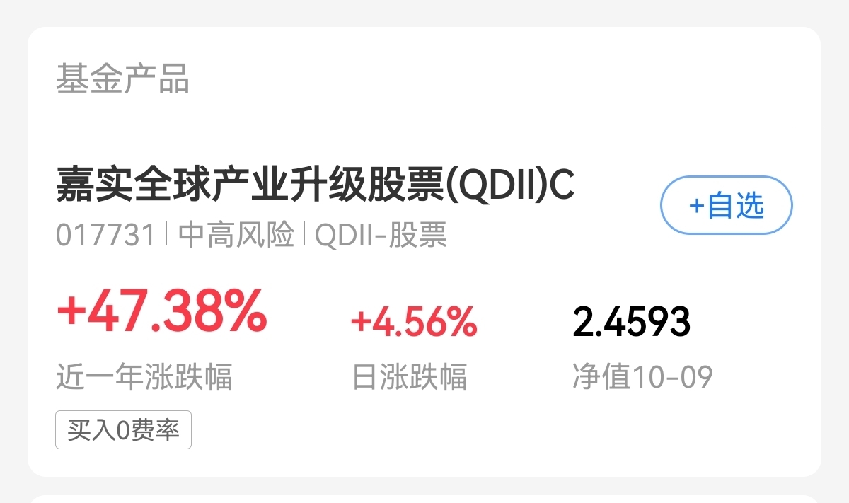 今天科技继续调整,$嘉实全球产业升级股票(QDII)C$ 持仓全球科技产业,美光科技、英伟达、高通、新思科技、德州仪器等。聚焦全球投资机会,哪个市场有机会就去哪里,近一年涨幅47.38%也是非常优秀。全球AI产业持续发展,微软、谷歌等巨头资本开支再创新高,芯片需求井喷,继续加油了!