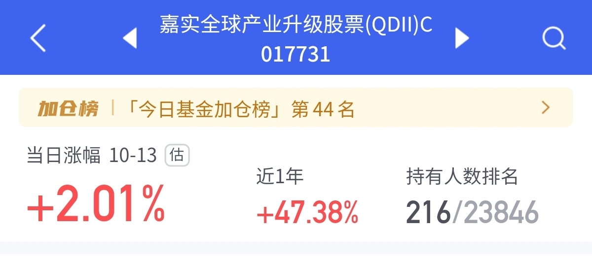 什么情况啊?美股都开始反弹了今天A股竟然高开低走!我关注的这个宝藏基$嘉实全球产业升级股票(QDII)C$ 逆势上涨,估值2.01%持仓全球科技产业,美光科技、英伟达、高通、新思科技、德州仪器等。聚焦全球投资机会,近一年涨幅47.38%也是非常优秀。全球AI产业持续发展,微软、谷歌等巨头资本开支再创新高,芯片需求井喷,继续加油了!