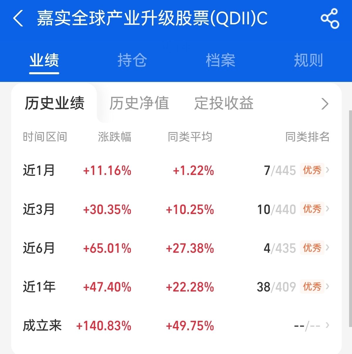 利好来了鲍威尔暗示10月降息,美股回暖。今天A股国产软件、软件开发板块走强,榕基软件涨停,麒麟信安涨超6%,浩辰软件、久其软件、华大九天涨幅居前。消息面上,新凯来子公司发布两款EDA设计软件。$嘉实全球产业升级股票(QDII)C$ 持仓英伟达等顶尖科技股;“全球灵活布局”抓牢美股、港股机会;近一年涨47.4%;AI带动芯片需求,长期受益。而且布局的全球科技这更能均衡,看好经理择时能力了!