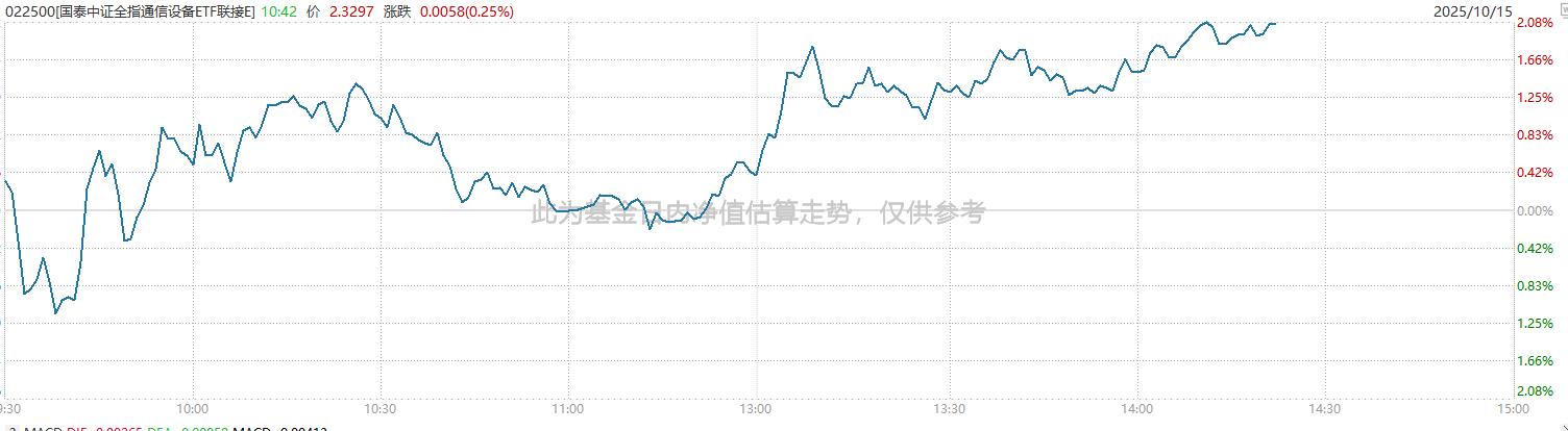 反弹信号出现!通信设备领涨科技板块,市场小幅回暖,通信设备率先反弹!$国泰中证全指通信设备ETF联接E(022500)$实时估值涨超1.60%,涨幅排名数一数二,远超同类型其他基金,基金光模块占比超50%,中际旭创Q3净利润预增108%-130%,海外云厂AI资本开支超2000亿美元未改。液冷散热市场2024年增长96%,基金经理精准布局算力基建,现在上车正逢低吸良机,趋势延续确定性强!#机器人新催化?马斯克构建“世界模型”#