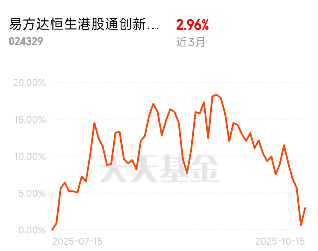 最近创新药板块涨势喜人,恒生港股通创新药指数涨幅甩其他指数一截。易方达这只 C 类就投它,100% 纯创新药,纯度够高才好跟着吃肉。