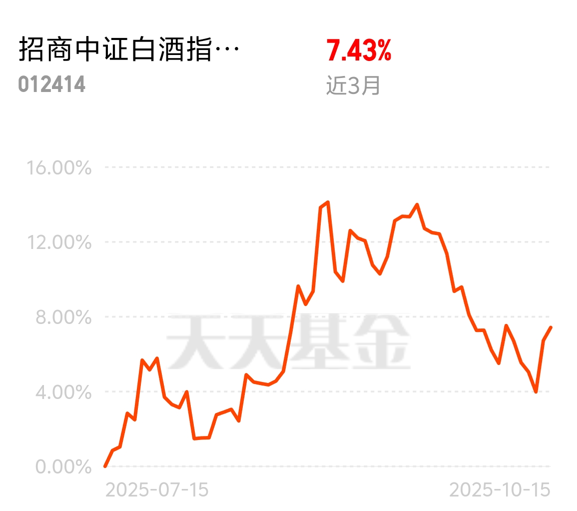 白酒近期行情稳!今天招商中证白酒C估值涨一个多点,近三月大涨7.43%,靠谱。当
